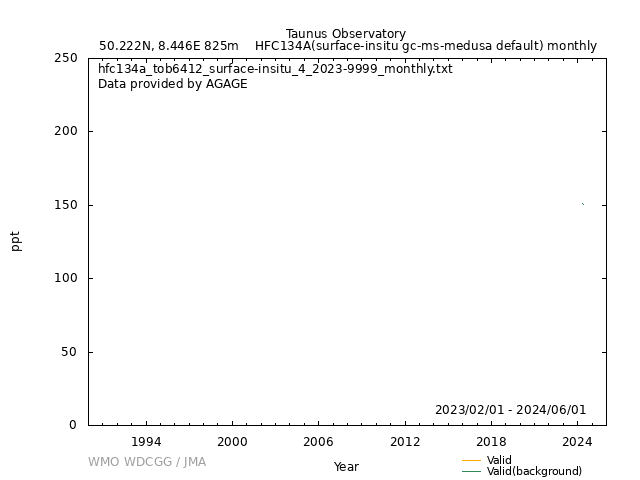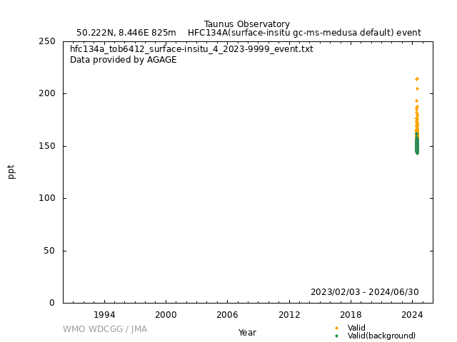 All HFC-134a data contributed to WDCGG by GAW stations and mobiles by 2025-08-18 |