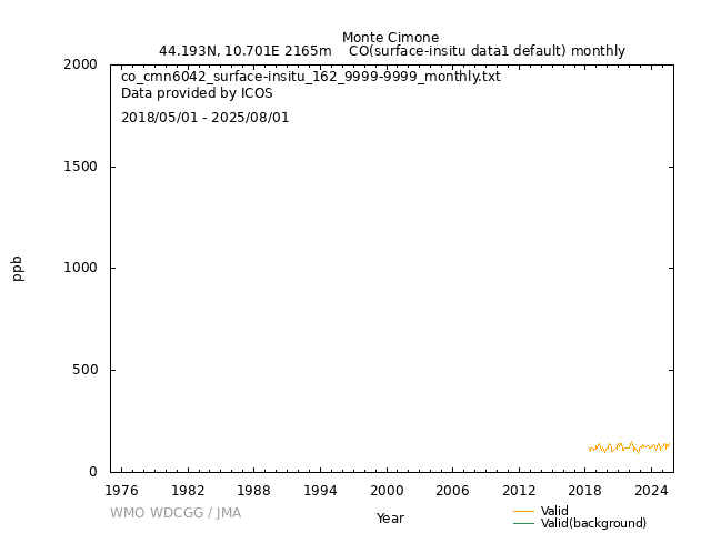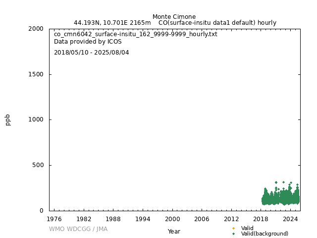 ICOS atmospheric station Observational timeseries of ambient mole fraction of CO in dry air, composed of (all whenever available) historical PI quality-checked data, ICOS Level 2 data and ICOS NRT data. The following uncertainty estimates are used: a. Continuous Measurement Repeatability: monthly average of the standard deviations of short-term target raw data over 1-minute intervals b. Long Term Repeatability: standard deviation of the averaged short-term target measurement intervals (of 10 minutes every 5 hours approximately) over three days c. Short Term Target Bias: difference between the hourly average of the short-term target injections and the value assigned by the calibration lab The method used for "value_unc_1" is "Continuous Measurement Repeatability". The method used for "value_unc_2" is "Long Term Repeatability". The method used for "value_unc_3" is "Short Term Target Bias". More information about the uncertainty estimates can be found in Yver Kwok et al. (2015) (https://doi.org/10.5194/amt-8-3867-2015) and Yver-Kwok et al. (2021) (https://amt.copernicus.org/articles/14/89/2021/). PID: 11676/iK93fYlotIbJwIui3LgNNYWZ Citation: ICOS RI, Bergamaschi, P., Colomb, A., De Mazière, M., Emmenegger, L., Harris, E., Kubistin, D., Lehner, I., Lehtinen, K., Leuenberger, M., Lund Myhre, C., Marek, M.V., O'Doherty, S., Platt, S.M., Plaß-Dülmer, C., Ramonet, M., Schmidt, M., Stanley, K., di Sarra, A., Apadula, F., Arnold, S., Blessing, C., Chen, H., Conil, S., Couret, C., Cristofanelli, P., Di Iorio, T., Forster, G., Frumau, A., Hatakka, J., Heliasz, M., Hensen, A., Hermansen, O., Hoheisel, A., Kneuer, T., Larmanou, E., Laurila, T., Leskinen, A., Levula, J., Lindauer, M., Lopez, M., Lunder, C., Mammarella, I., Manca, G., Manning, A., Marklund, P., Meinhardt, F., Molder, M., Müller-Williams, J., Ottosson-Löfvenius, M., Piacentino, S., Pitt, J., Rivas-Soriano, P., Scheeren, B., Schumacher, M., Sha, M.K., Smith, P., Steinbacher, M., Vermeulen, A., Vítková, G., Ylisirniö, A., Yver-Kwok, C., Zwerschke, E., Arriga, N., Conen, F., Kazan, V., Roulet, Y.-A., Biermann, T., Delmotte, M., Heltai, D., Komínková, K., Laurent, O., Miettinen, P., Montaguti, S., Pichon, J.-M., Sferlazzo, D., Trisolino, P., Zazzeri, G., Blandin, E., Bracci, A., Busetto, M., Bäni, L., Calzolari, F., Elsasser, M., Fratticioli, C., Friedli, J., Fuente-Lastra, M., Gest, L., Grossmann, J., Hanuš, V., Helle, J., Hermans, C., Keronen, P., Kolari, P., Kumps, N., Laitinen, A., Langrene, L., Lanza, A., Legendre, V., Lopez, D., Mandrick, Z., Metzger, J.-M., Rigouleau, L.-J., Schreiber, M., Steger, D., Taipale, R., Weyrauch, D., van den Bulk, P., Álvarez Hernández, A., ICOS Carbon Portal, ICOS Atmosphere Thematic Centre, ICOS Flask And Calibration Laboratory, ICOS Central Radiocarbon Laboratory, 2025. European Obspack compilation of atmospheric carbon monoxide data from ICOS and non-ICOS European stations for the period 2016-2025; obspack_co_466_GVeu_v11.0_20250821. https://doi.org/10.18160/M3VW-DRM5 DATA POLICY: ICOS data is licensed under a Creative Commons Attribution 4.0 international licence (https://creativecommons.org/licenses/by/4.0/). ICOS data licence is described at https://data.icos-cp.eu/licence. |