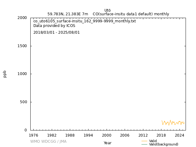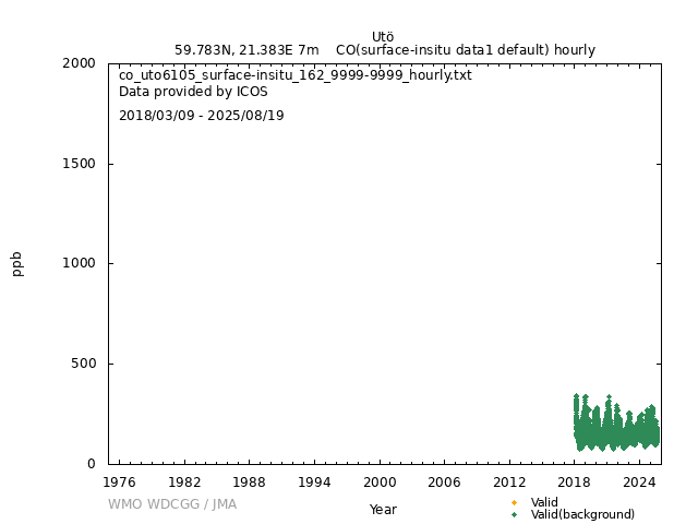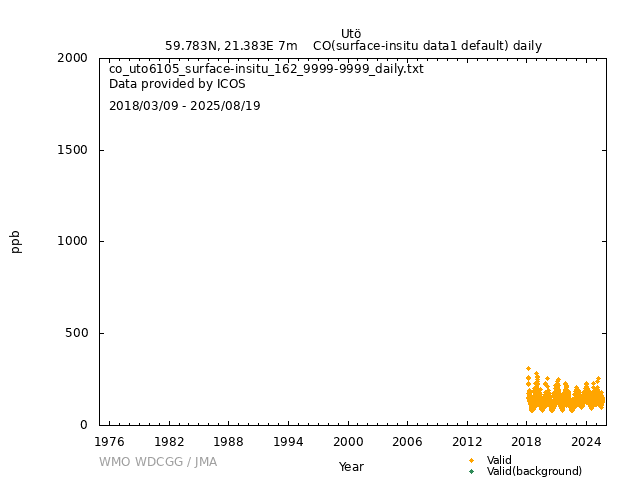 ICOS atmospheric station Observational timeseries of ambient mole fraction of CO in dry air, composed of (all whenever available) historical PI quality-checked data, ICOS Level 2 data and ICOS NRT data. The following uncertainty estimates are used: a. Continuous Measurement Repeatability: monthly average of the standard deviations of short-term target raw data over 1-minute intervals b. Long Term Repeatability: standard deviation of the averaged short-term target measurement intervals (of 10 minutes every 5 hours approximately) over three days c. Short Term Target Bias: difference between the hourly average of the short-term target injections and the value assigned by the calibration lab The method used for "value_unc_1" is "Continuous Measurement Repeatability". The method used for "value_unc_2" is "Long Term Repeatability". The method used for "value_unc_3" is "Short Term Target Bias". More information about the uncertainty estimates can be found in Yver Kwok et al. (2015) (https://doi.org/10.5194/amt-8-3867-2015) and Yver-Kwok et al. (2021) (https://amt.copernicus.org/articles/14/89/2021/). PID: 11676/GTH_F4fFDrtj-1FcdjyA6AzB Citation: ICOS RI, Bergamaschi, P., Colomb, A., De Mazière, M., Emmenegger, L., Harris, E., Kubistin, D., Lehner, I., Lehtinen, K., Leuenberger, M., Lund Myhre, C., Marek, M.V., O'Doherty, S., Platt, S.M., Plaß-Dülmer, C., Ramonet, M., Schmidt, M., Stanley, K., di Sarra, A., Apadula, F., Arnold, S., Blessing, C., Chen, H., Conil, S., Couret, C., Cristofanelli, P., Di Iorio, T., Forster, G., Frumau, A., Hatakka, J., Heliasz, M., Hensen, A., Hermansen, O., Hoheisel, A., Kneuer, T., Larmanou, E., Laurila, T., Leskinen, A., Levula, J., Lindauer, M., Lopez, M., Lunder, C., Mammarella, I., Manca, G., Manning, A., Marklund, P., Meinhardt, F., Molder, M., Müller-Williams, J., Ottosson-Löfvenius, M., Piacentino, S., Pitt, J., Rivas-Soriano, P., Scheeren, B., Schumacher, M., Sha, M.K., Smith, P., Steinbacher, M., Vermeulen, A., Vítková, G., Ylisirniö, A., Yver-Kwok, C., Zwerschke, E., Arriga, N., Conen, F., Kazan, V., Roulet, Y.-A., Biermann, T., Delmotte, M., Heltai, D., Komínková, K., Laurent, O., Miettinen, P., Montaguti, S., Pichon, J.-M., Sferlazzo, D., Trisolino, P., Zazzeri, G., Blandin, E., Bracci, A., Busetto, M., Bäni, L., Calzolari, F., Elsasser, M., Fratticioli, C., Friedli, J., Fuente-Lastra, M., Gest, L., Grossmann, J., Hanuš, V., Helle, J., Hermans, C., Keronen, P., Kolari, P., Kumps, N., Laitinen, A., Langrene, L., Lanza, A., Legendre, V., Lopez, D., Mandrick, Z., Metzger, J.-M., Rigouleau, L.-J., Schreiber, M., Steger, D., Taipale, R., Weyrauch, D., van den Bulk, P., Álvarez Hernández, A., ICOS Carbon Portal, ICOS Atmosphere Thematic Centre, ICOS Flask And Calibration Laboratory, ICOS Central Radiocarbon Laboratory, 2025. European Obspack compilation of atmospheric carbon monoxide data from ICOS and non-ICOS European stations for the period 2016-2025; obspack_co_466_GVeu_v11.0_20250821. https://doi.org/10.18160/M3VW-DRM5 DATA POLICY: ICOS data is licensed under a Creative Commons Attribution 4.0 international licence (https://creativecommons.org/licenses/by/4.0/). ICOS data licence is described at https://data.icos-cp.eu/licence. |